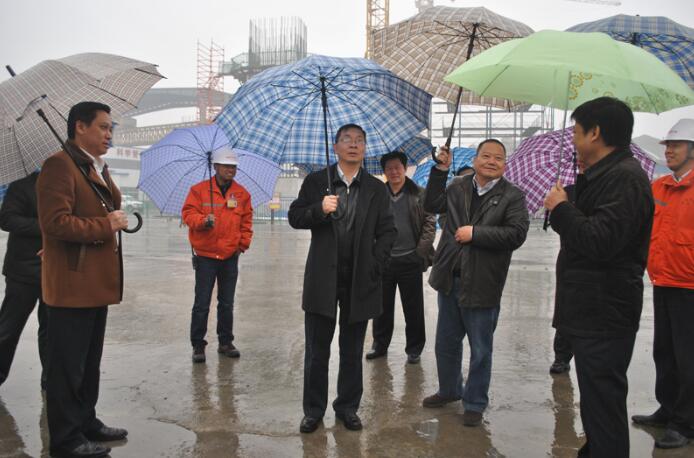 2015年1月6日,岳陽市副市長陳恢清、岳陽樓區(qū)區(qū)委書記秧勵一行在大岳高速洞庭湖大橋建設(shè)開發(fā)有限公司總經(jīng)理梁振西的陪同下,冒著寒冬細(xì)雨來到大橋A1標(biāo)項目視察。