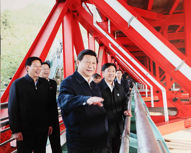 中央兩家重量級媒體《人民日報(bào)》、央視《新聞聯(lián)播》的連續(xù)報(bào)道是黨和國家領(lǐng)導(dǎo)人對集團(tuán)承建的矮寨大橋的肯定與褒獎(jiǎng)的延續(xù)。矮寨大橋在建和建成通車后,多位黨和國家領(lǐng)導(dǎo)人前往視察,讓我們再次重溫這些時(shí)刻:2011年6月,時(shí)任國家政協(xié)主席賈慶林視察矮寨大橋;2012年5月,時(shí)任國務(wù)院總理溫家寶視察矮寨大橋;2013年11月3日,習(xí)總書記在視察矮寨大橋時(shí)贊譽(yù):“月亮不僅僅是外國的圓,這就是中國的圓月亮!”