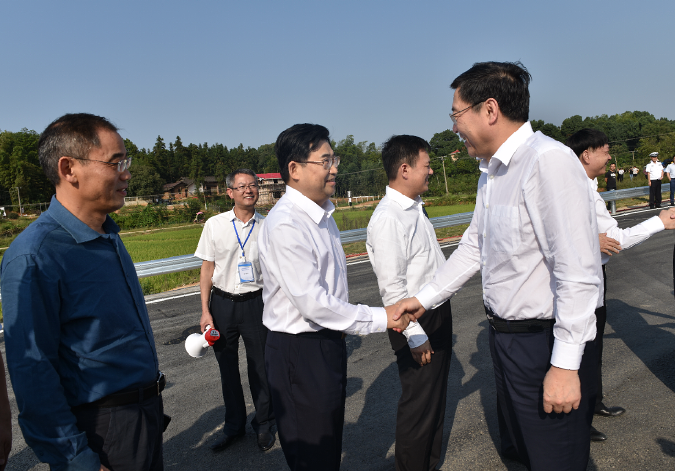 杜家毫代表省委、省政府對岳望高速公路的建成通車表示熱烈祝賀!向為岳望高速建設(shè)作出辛勤努力的建設(shè)者們表示親切的問候和衷心的感謝!他指出,湖南高速里程達(dá)6500公里以上,躋身全國前五,取得如此成績,與建設(shè)者們的辛勤付出是分不開的。他勉勵大家再接再厲、不負(fù)眾望,把道路建設(shè)好、管理好,使之成為一條暢通路、富民路,讓人民群眾在基礎(chǔ)設(shè)施建設(shè)中有更多幸福感、獲得感。