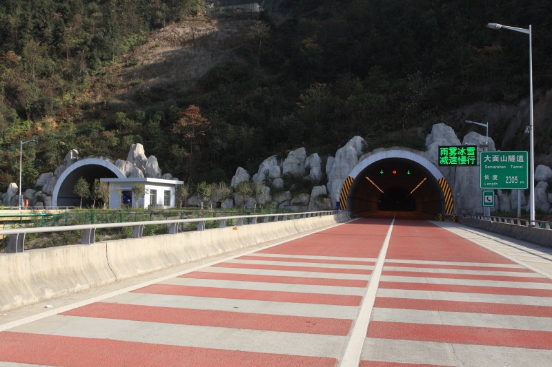 大面山連拱隧道,全長2305,凈寬10.75米、凈高5.0米,2008年12月竣工通車。