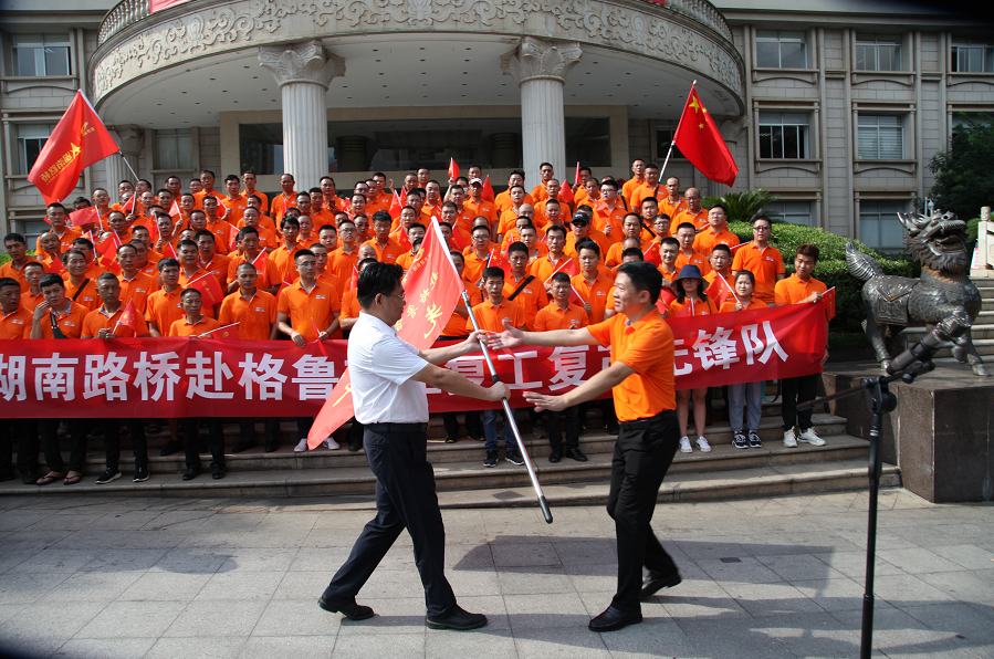“走出國門,你代表的就是中國”。出征儀式上,湖南交水建集團(tuán)黨委書記、董事長方聯(lián)民向赴格團(tuán)組領(lǐng)隊(duì)授“赴格魯吉亞復(fù)工復(fù)產(chǎn)先鋒隊(duì)”隊(duì)旗。省國資委黨委委員、副主任張美誠,湖南交水建集團(tuán)和湖南路橋集團(tuán)相關(guān)領(lǐng)導(dǎo)對(duì)團(tuán)組成員進(jìn)行慰問,贈(zèng)送防疫愛心禮包,歡送這群為國際工程履約、奔赴海外的“最美逆行者”。