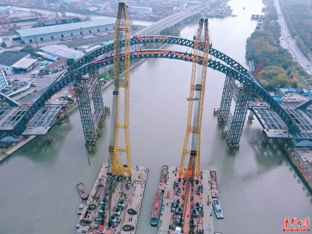 湖南日報·華聲在線11月25日訊(通訊員 楊新湘 趙宇清)今天,由湖南建投集團旗下湖南路橋承建的無錫菱湖大橋拱肋順利合龍。大橋主跨183米,是京杭大運河無錫段跨度最大的橋梁,合龍拱長101.3米,最大重量530噸,是京杭運河上單次吊裝長度最長、重量最大的鋼桁架合龍拱節(jié)段。